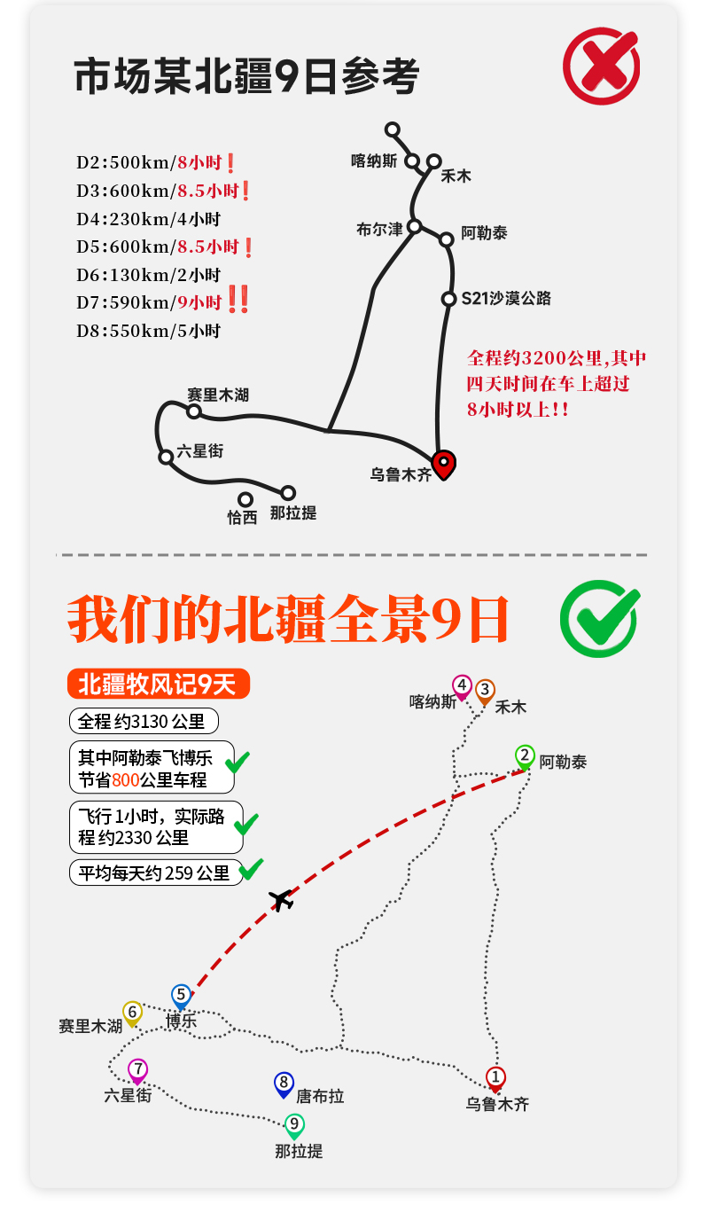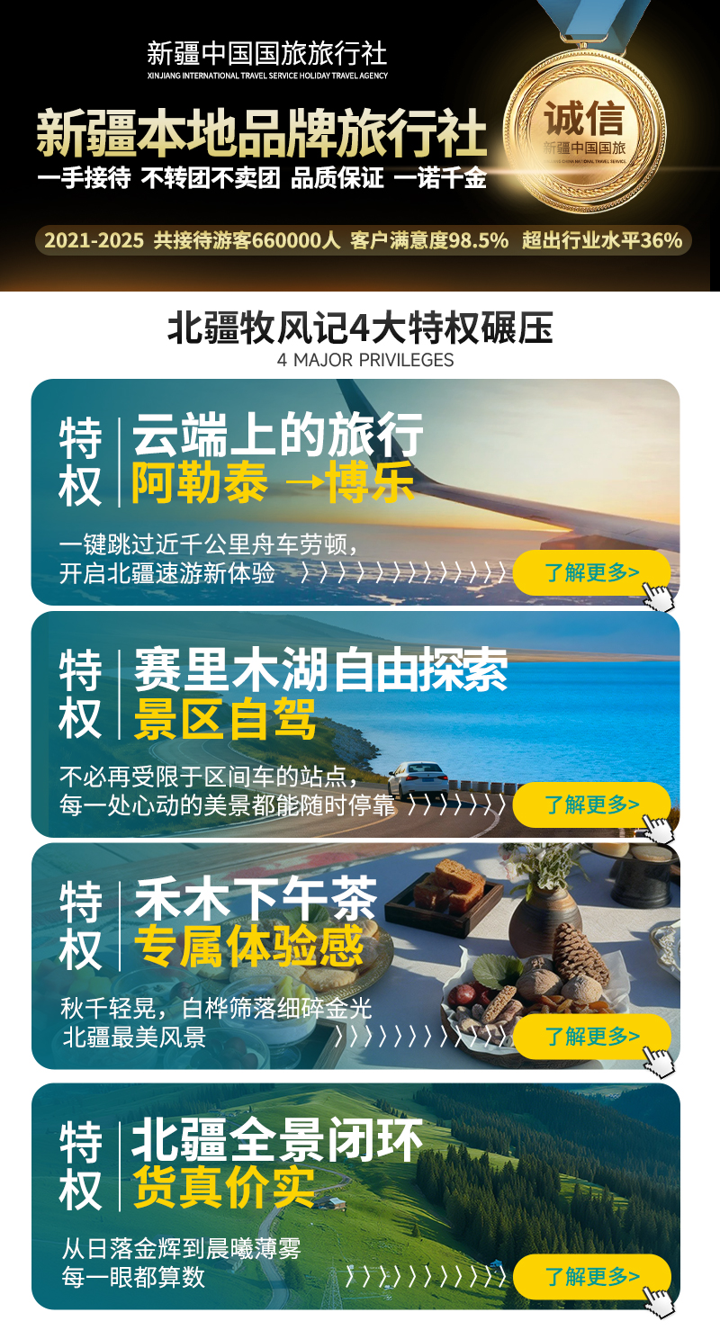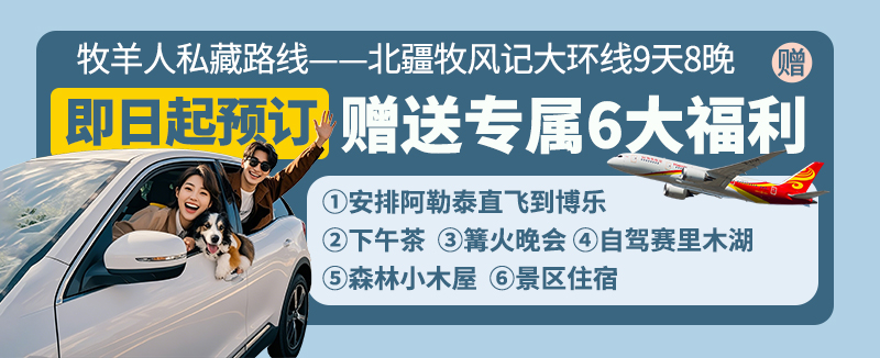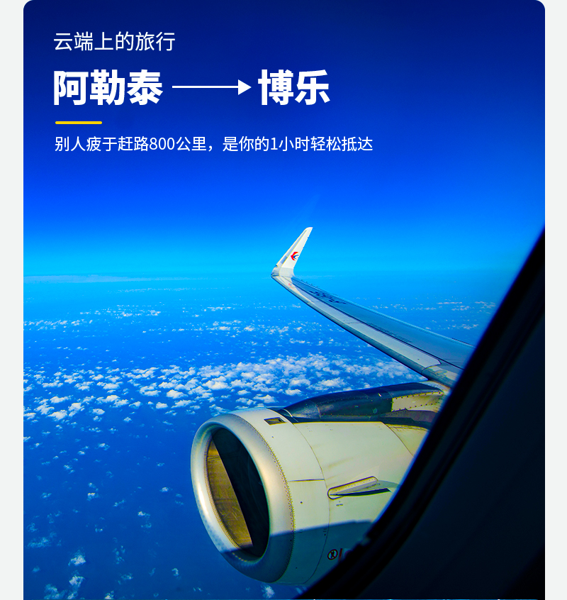 【独家赠送】 独家安排阿勒泰飞博乐,一键跳过近千公里舟车劳顿,开启北疆速游新体验。