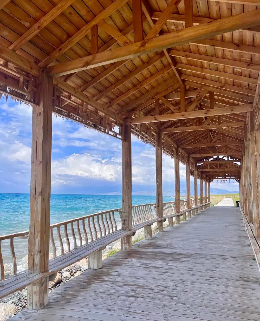 沿着蜿蜒曲折的木栈道可以抵达山顶,将赛里木湖的雄、奇、秀、幽、旷一览无余。